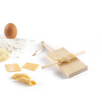 - Medfølgende pinjetræ-stick: Perfekt til at forme garganelli med præcision