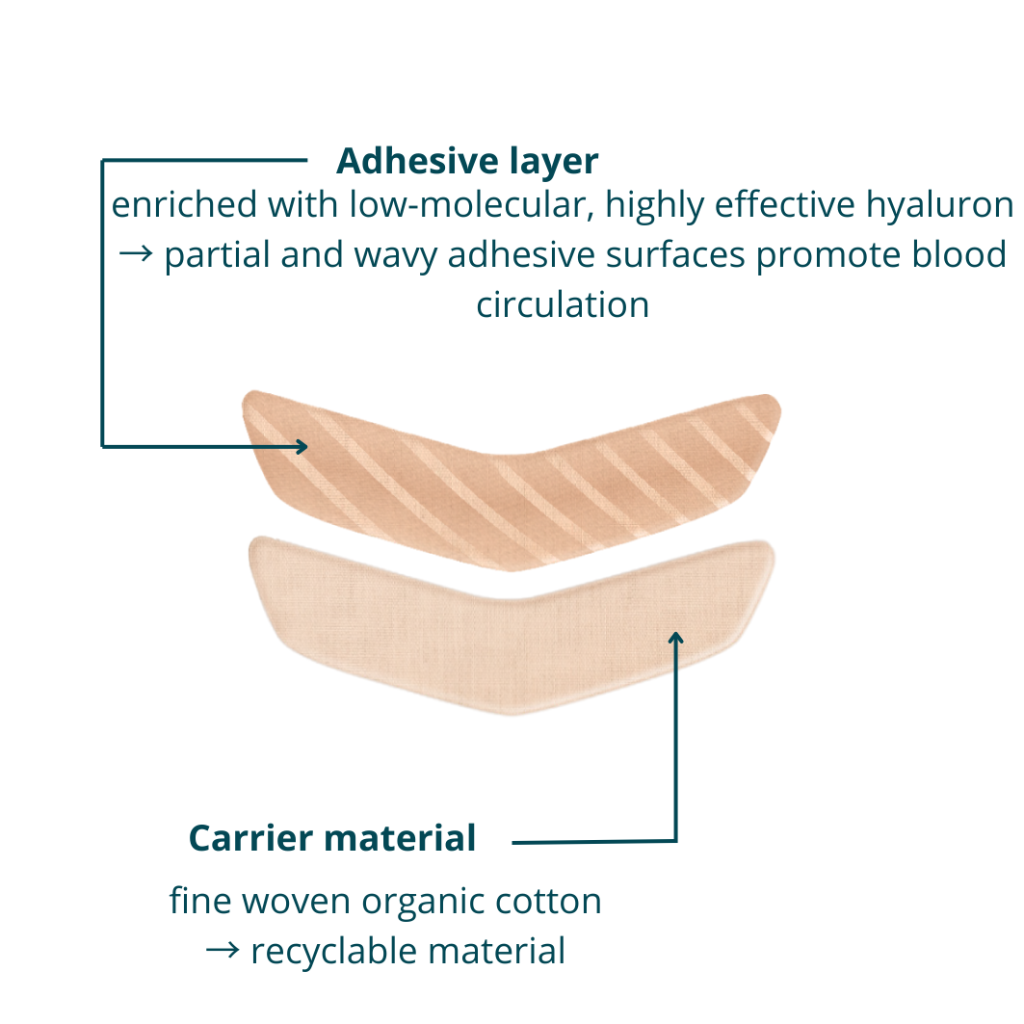 Dette plaster er et engangsplaster. Denne pad er klinisk bevist at udglatte linjer omkring mundområdet, hvilket giver et mere ungdommeligt og frisk udseende. Hver pad er håndlavet i Tyskland, vegansk og cruelty free, hvilket sikrer både kvalitet og ansvarlig produktion.